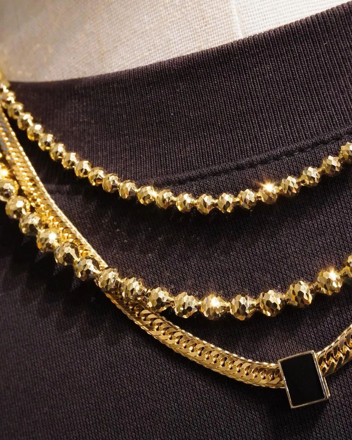 18金ビーズペンダントは、シンプルなコーディネートにも華を添えるアイテムです。例えば、シンプルな白シャツや黒のタートルネックに18金ビーズペンダントを合わせるだけで、一気に洗練された印象になります。その輝きと細やかなデザインが、日常のカジュアルなスタイルにもエレガントな雰囲気を加えます。また、オフィススタイルにもぴったりです。スーツやブラウスに18金ビーズペンダントをプラスすることで、ビジネスシーンにおいても自分らしさを演出することができます。18金のビーズが持つ上品な輝きは、どんな場面でもその存在感を放ち、周囲の視線を引きつけることでしょう。