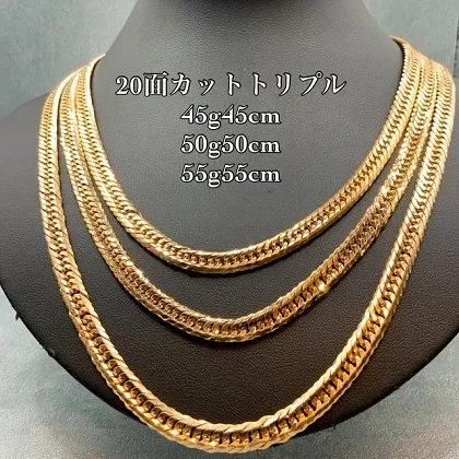 18金20面カットトリプルネックレスは、様々なシーンに応じたコーディネートを楽しむことができます。カジュアルな日常シーンでは、シンプルなトップスにこのネックレスをプラスするだけで、上品なアクセントを加えることが可能です。特に、カジュアルなTシャツやセーターとの相性が良く、日常の装いにちょっとした華やかさを添えてくれます。そして、フォーマルなシーンでは、エレガントなドレスやブラウスに合わせることで、20面カットの煌めきが一層引き立ち、洗練された印象を与えます。特に、夜のイベントやパーティーシーンでは、周囲の光を反射して、より一層の輝きを放つでしょう。ビジネスシーンでも、18金の上品さが落ち着きを醸し出し、スーツやオフィスカジュアルにぴったりです。