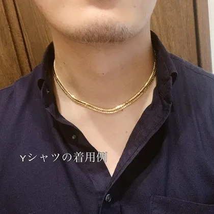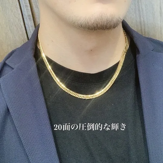 フォーマルな場面では、18金20面カットトリプルネックレスが持つ高級感と輝きが、装いにさらなる洗練された印象を与えます。シンプルなドレスやスーツにこのネックレスを合わせることで、エレガンスと華やかさを兼ね備えたスタイルが完成します。特にトリプルデザインは、フォーマルなシーンにおいても重厚感をもたらし、周囲の目を引くこと間違いなしです。18金の輝きが、フォーマルな装いにさらに奥行きを与えるでしょう。
