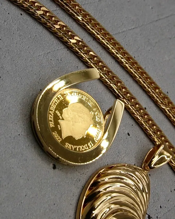 コインと喜平の鉄板コンボ コインと喜平の鉄板コンボ1/25オンス100円玉くらいのコインペンダントです20g16面Mカットの50cmを加えて、やりすぎではないけど、ゴージャスに!エイアイジュエリーズホームページにて掲載中!この2点で…