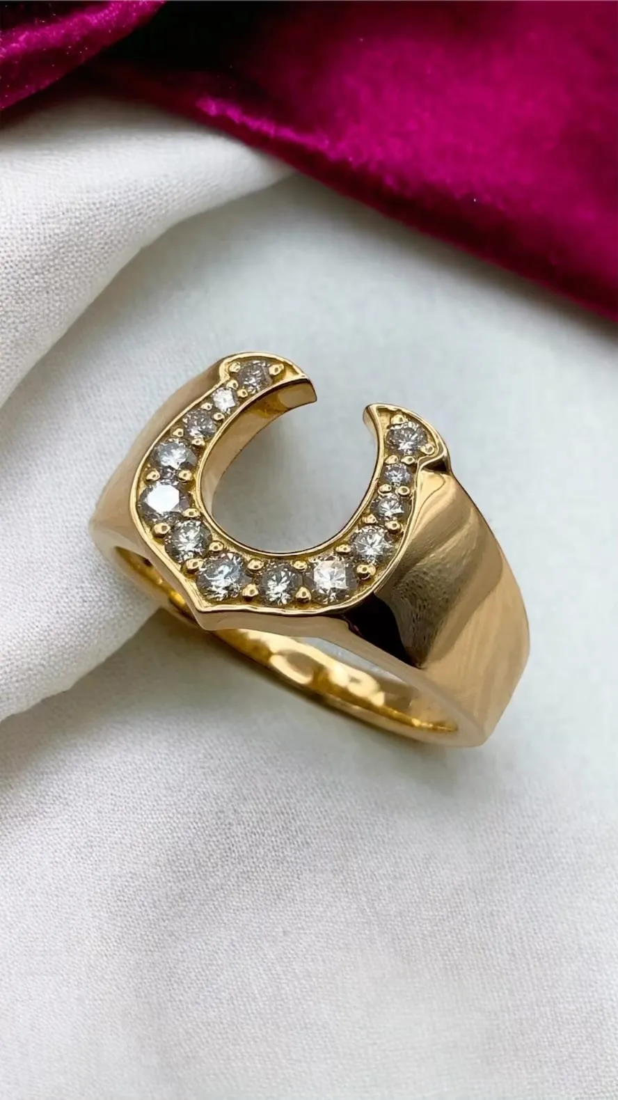 ホースシューリング⁎⁺˳✧ ホースシューリング⁎⁺˳✧ダイヤモンド入りの馬蹄を大胆に模ったデザイン。馬蹄はイカつめデザインが多いですが、こちらは輪部分がシンプルですので、程よく指周りを煌びやかに演出してくれます。品番krー98…