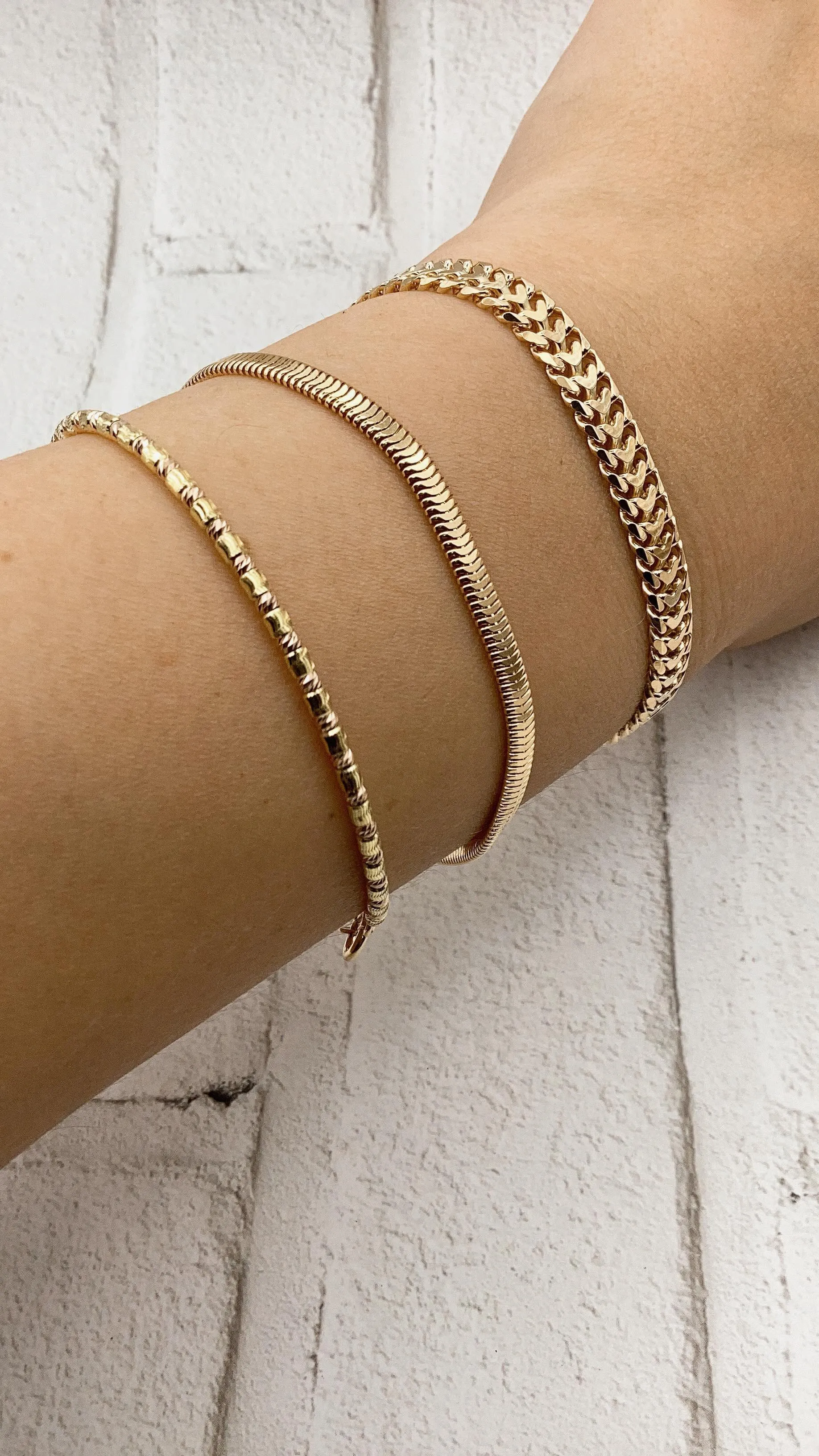 レディースブレスレットのご紹介です♪♪ レディースブレスレットのご紹介です♪♪ハートビズブレスレット16cm(長さ違いも取り扱い有り)幅約6.5ミリで比較的幅広タイプ😊中央部分がハート❤️にも見える可愛いカットです🥰喜平よりもフラットな厚みで…