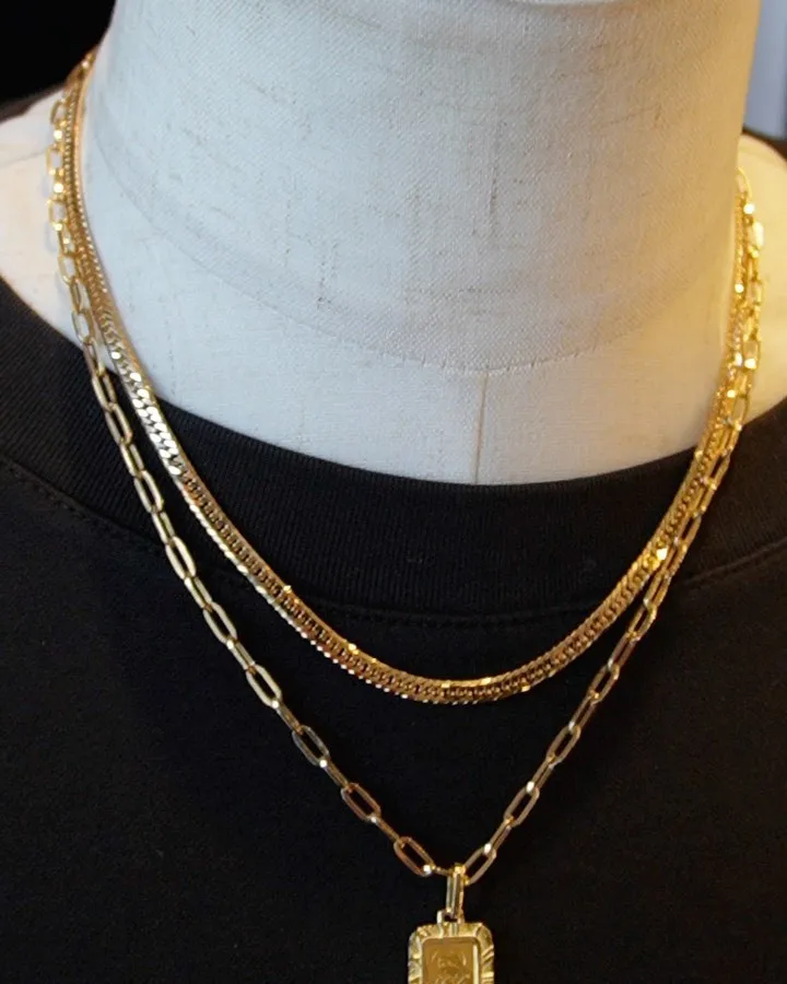 #K18 マリアペンダントコーデ⁎⁺˳✧༚ #K18マリアペンダントコーデ⁎⁺˳✧༚#喜平45cmペーパークリップ50cmに#マリアペンダントをプラスしました😎8面喜平のギラリとした輝きを、ペーパークリップクリップの輝きでパワーアップ四角い#ペンダント…