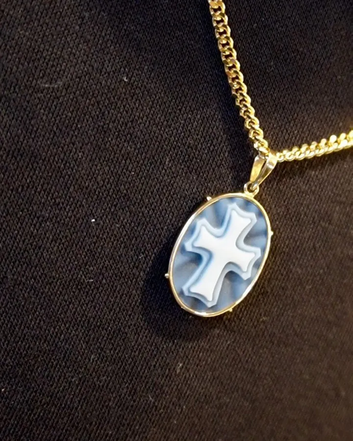 #k18 魅惑のカメオ風クロスペンダント⁎⁺˳✧༚ #k18魅惑のカメオ風クロスペンダント⁎⁺˳✧༚#カメオ風のクロスペンダントです✝️従業員のお気に入り商品です🤩もう入荷しない、ラスト1点ですので記念に撮影しました📸◎カメオペンダント総重量約2g横約15.8mm…