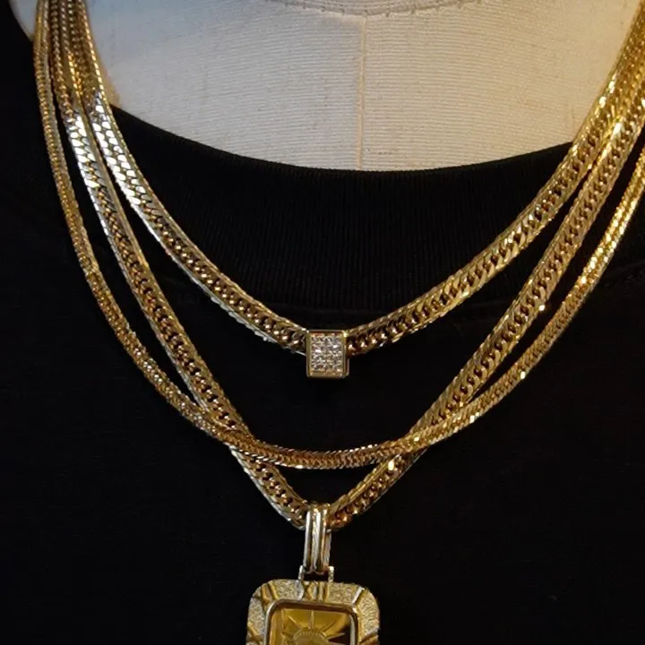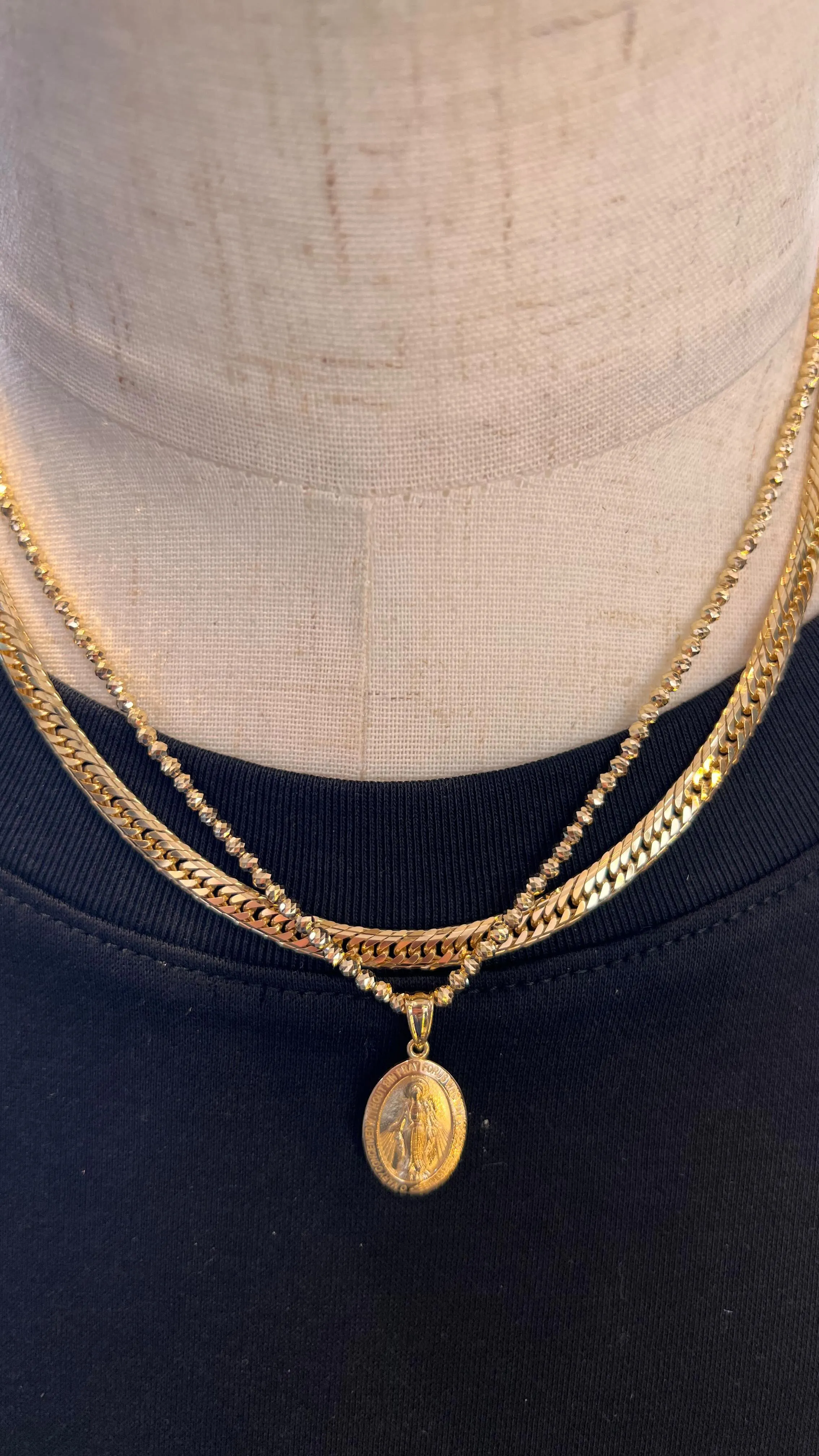 K18 マリアメダイLサイズ⁎⁺˳✧༚ K18マリアメダイLサイズ⁎⁺˳✧༚2.5mmのシャンデリアとMカット27g45cm幅のある喜平にも負けないマリア様の存在感✨女性にも男性にも人気のペンダントです。およそ10g代まで通ります。明日はこの組み合わせを…