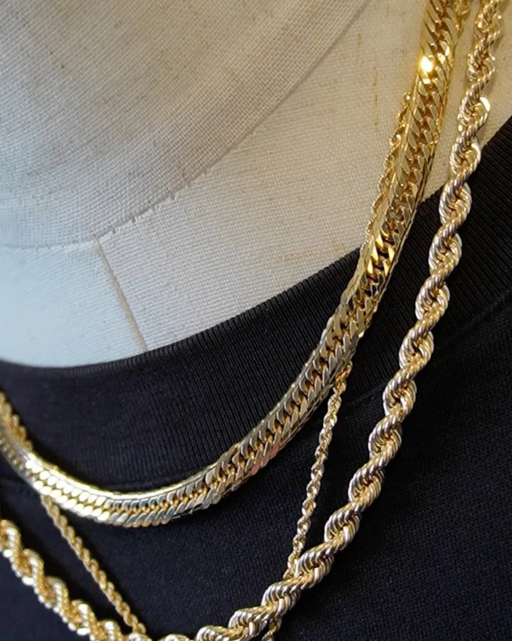 K18 ボリュームコーデ⁎⁺˳✧༚ K18ボリュームコーデ⁎⁺˳✧༚太いチェーンと細いチェーンが、お互いに引き立てる感じが良き😎⚪︎Mカットトリプル34g45cmkmt-3445⚪︎5mmロープネックレス50cm※中空kr5-50⚠️通常は受注生産の商品です⚠️シャイニー…