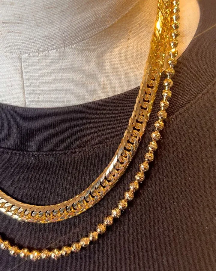 K18 12面トリプル 9g 45cm⁎⁺˳✧༚ K1812面トリプル9g45cm⁎⁺˳✧༚メンズ短めの45cmの細め喜平との重ね付けをコーディネートしてみました💎◎12面9g45cm品番k12t-945艶やかな輝きが美しい12面です♪◎12面12g50cm品番k12t-125012面で合わせてみま…